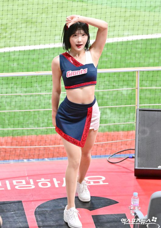 (엑스포츠뉴스 고척, 김한준 기자) 30일 오후 서울 구로구 고척스카이돔에서 열린 '2025 신한 SOL Bank KBO리그' 롯데 자이언츠와 키움 히어로즈의 경기, 최홍라 치어리더가 멋진 공연을 선보이고 있다.김한준 기자 kowel@xportsnews.com