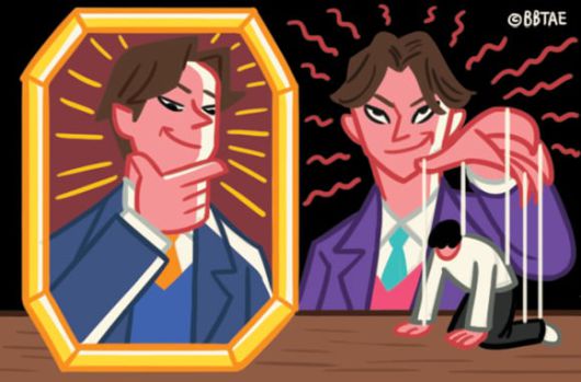 자아도취자는 또한 타인을 업신여기고(look down on) 비하하며(belittle) 멸시하고(despise), 좌절에 대한 인내심(tolerance for frustration)이 부족하며 쉽게 화를 낸다. 비난을 남에게 돌리면서(shift blame onto others) 거짓말을 밥 먹듯 하고 권력 욕구가 지나쳐 다른 사람을 자신이 원하는 대로 길들이는(manipulate others to get their way) ‘가스라이팅’을 하려 든다. 그나마 다른 사람들이 자신을 어떻게 생각하는지에 대해선 신경을 쓰며, 약간의 공감이나 후회는 느낀다.