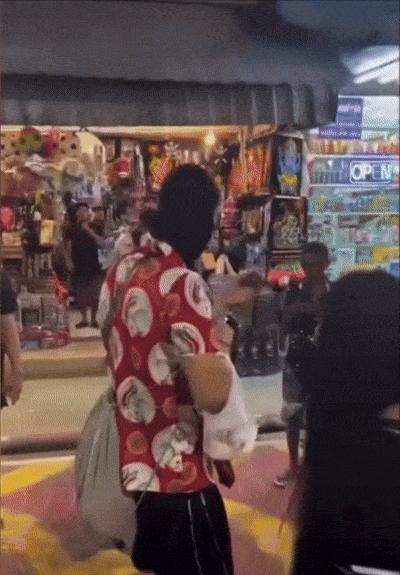 지나가던 태국 여성은 남성의 머리에서 바퀴벌레를 발견하고 손으로 튕겨서 날려버렸다.