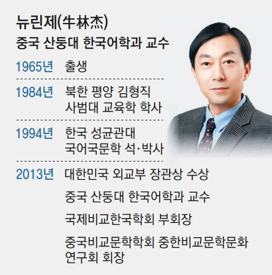동아일보는 중국 산둥대에서 한류와 동아시아 문화를 연구하는 뉴린제(牛林杰·60) 교수와 전화 및 서면 인터뷰를 진행했다. 뉴 교수는 북한 김형직사범대 교육학부를 졸업한 뒤 한국 성균관대에서 국문학 석사와 박사 학위를 받았다. 현재는 산둥대에서 ‘국제 동아시아연구원’ 설립을 준비 중이다. 그는 중국 내에서 드물게 한국어로 한류를 연구하고 해석할 수 있는 전문가로 평가받는다.