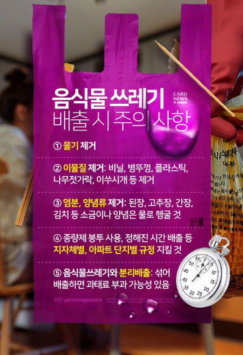 ④종량제 봉투 사용, 정해진 시간만 배출 등 지자체별, 아파트 단지별 규정 지킬 것