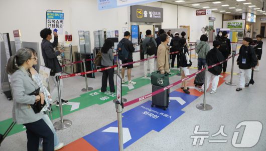긴 황금연휴를 앞둔 29일 광주공항 출발 탑승구 앞에서 시민들이 제주행 비행기에 탑승하기 위해 채비하고 있다. 2025.4.29/뉴스1 ⓒ News1 이수민 기자 |