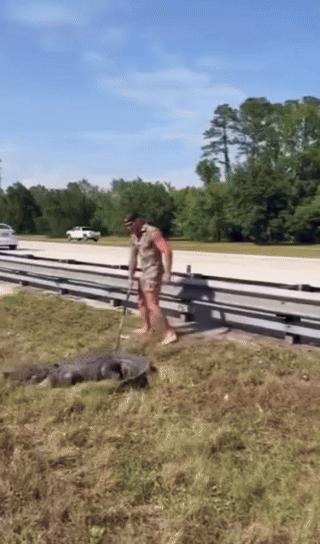 이후 그는 악어 위에 올라타 턱을 제압해 악어를 트럭 뒷좌석에 태워 혼잡한 고속도로 밖으로 옮겼다.