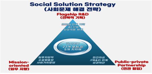 특히, 올해는 사회문제해결 3대 전략의 중점 추진 사항으로 △사회적 가치 시범 적용 및 현장 적용성을 높이는 범부처 플래그십 사업 기획 △부처 고유 임무 중심의 문제해결력을 강화하는 수요 맞춤형 R&D 사업 추진 △민간투자와 연계한 정부R&D 성과 활용?확산을 촉진하는 민?관 협업 체계 강화를 제시했다.