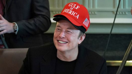 ▲ 일론 머스크 테슬라 최고경영자(CEO)가 도널드 트럼프 미국 대통령이 소집한 각료회의에 '미국만'라는 문구가 박힌 모자를 쓰고 참석했다.
