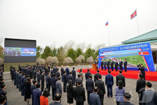 (평양 노동신문=뉴스1) = 북한 노동당 기관지 노동신문은 전날인 30일 북한 나선과 러시아 하산에서 '북러 국경 자동차 다리 건설 착공식'이 동시에 개최됐다고 1일 보도했다. [국내에서만 사용가능. 재배포 금지. DB 금지. For Use Only in the Republic of Korea. Redistribution Prohibited] rodongphoto@news1.kr |