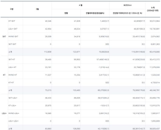 1일 한국통신사업자연합회(KTOA)가 발표한 ‘이동전화 번호이동자 수 현황’에 따르면, 지난 4월 번호이동 건수는 69만954건으로 전월보다 무려 31.4% 증가했다.