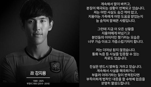 앞서 고 강지용은 지난달 22일 향년 35세 일기로 갑작스럽게 세상을 떠났다.