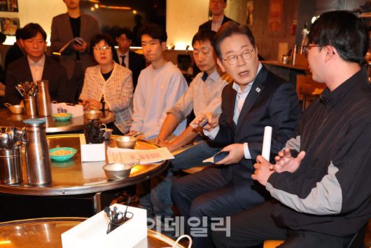 [이데일리 노진환 기자] 더불어민주당 이재명 대통령 후보가 노동절인 1일 오후 서울 종로구 삼일대로 한 식당에서 열린 민생시리즈2 <비전형 노동자 간담회>에서 참석 노동자들과 대화하고 있다.