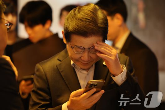 (서울=뉴스1) 이재명 기자 = 이재명 더불어민주당 대통령 후보가 1일 오후 서울 종로구 한 음식점에서 열린 '민생시리즈2' 비전형 노동자 간담회를 마친 후 스마트폰을 살펴보고 있다. (공동취재) 2025.5.1/뉴스12expulsion@news1.krCopyright ⓒ 뉴스1. All rights reserved. 무단 전재 및 재배포, AI학습 이용 금지.