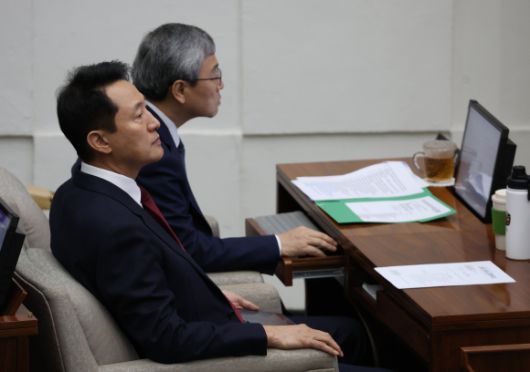 오세훈 서울시장이 지난달 30일 서울 중구 서울시의회에서 열린 제330회 임시회 본회의에 참석해 있다. 연합뉴스 |