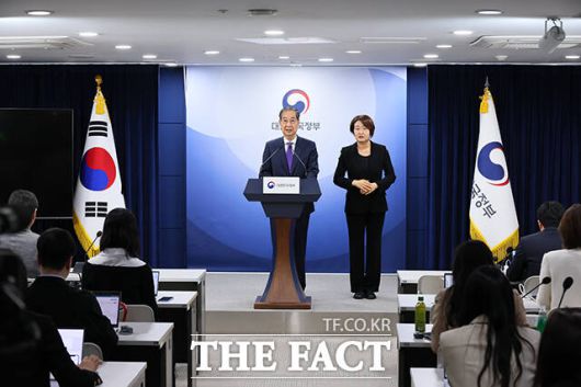 한덕수 대통령 권한대행 국무총리(왼쪽)가 1일 오후 서울 종로구 정부서울청사에서 대국민담화를 하고 있다. /국무총리실 |