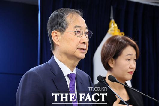 [더팩트ㅣ임영무 기자] 한덕수 대통령 권한대행 국무총리가 1일 오후 서울 종로구 정부서울청사에서 대국민담화를 하고 있다.