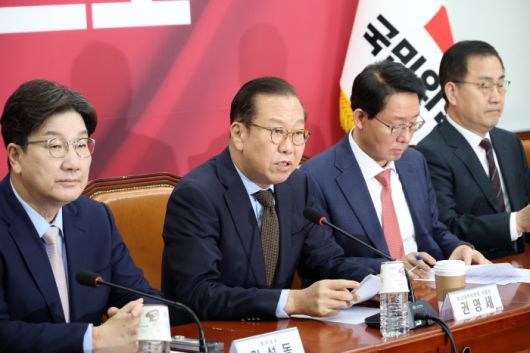 [서울=뉴스핌] 정일구 기자 = 권영세 국민의힘 비상대책위원장이 28일 오전 서울 여의도 국회에서 열린 비상대책위원회의에서 모두발언을 하고 있다. 2025.04.28 mironj19@newspim.com |