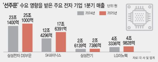 반도체를 비롯한 전자부품업계는 올해 1분기의 실적 키워드를 ‘가수요’라고 꼽았다. 도널드 트럼프 미국 대통령이 취임 이후 줄곧 무역 전쟁에 나서며 관세 불확실성을 키우고 있어 관세 부과 전 사재기 수요가 1분기에 다수 발생했다는 것이다.