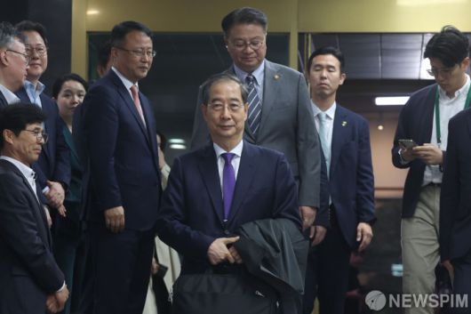 [서울=뉴스핌] 김학선 기자 = 한덕수 대통령 권한대행 국무총리가 1일 오후 서울 종로구 정부서울청사에서 대국민담화를 통해 사퇴를 표명한 뒤 청사를 나서고 있다. 2025.05.01 yooksa@newspim.com