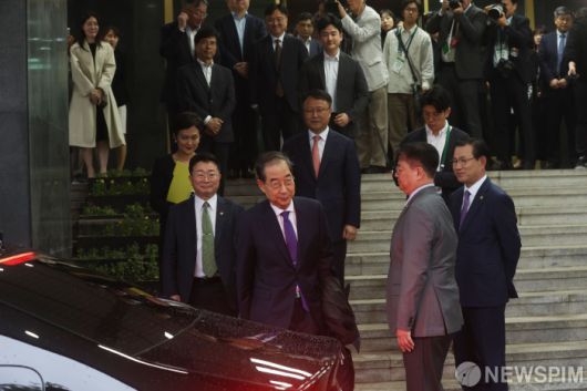 [서울=뉴스핌] 김학선 기자 = 한덕수 대통령 권한대행 국무총리가 1일 오후 서울 종로구 정부서울청사에서 대국민담화를 통해 사퇴를 표명한 뒤 청사를 나서고 있다. 2025.05.01 yooksa@newspim.com