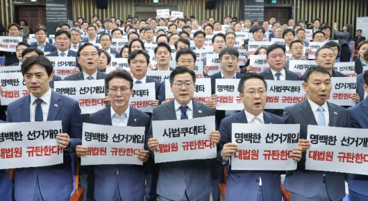 노 원내대변인은 "구체적으로 어떻게 대응할지에 대해서는 다양한 의견들이 나왔다"며 "예를 들어 '전면전'으로 인식해야 한다는 의견도 있었지만, 사법부를 향한 대응이기 때문에 신중해야 한다는 의견도 나왔다"고 전했다.