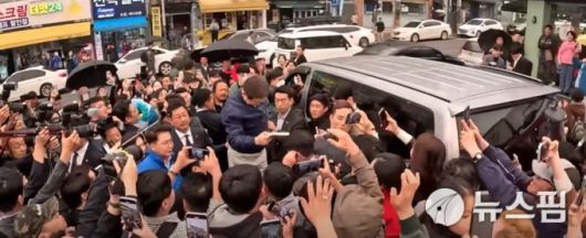 이 후보가 시장거리를 이동하는 도중 한 남성이 이 후보에게 접근하려다 제지 당했고, 인파에 밀린 한 지지자는 바닥에 넘어질 뻔 하기도 했다. 경호팀은 이 후보의 일정이 끝날 때까지 "질서있게 부탁드립니다"라고 요청했다.