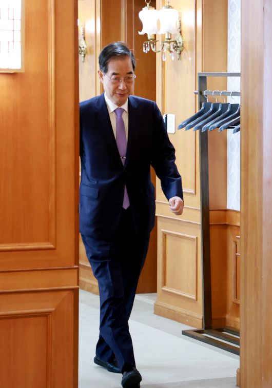 한 권한대행은 이날 오후 4시쯤 정부서울청사에서 대국민 담화를 통해 “저는 이제 대통령 권한대행 국무총리의 직을 내려놓는다”며 “이 길밖에 없다면 가야 한다고 결정했다”고 밝혔다. 한 권한대행은 6분여에 걸친 담화에서 “제 앞에는 두 갈래 길이 놓여 있다”며 “하나는 당장 제가 맡고 있는 중책을 완수하는 길, 다른 하나는 그 중책을 내려놓고 더 큰 책임을 지는 길”이라고 말했다. 그는 이어 “우리가 직면한 위기를 극복하기 위해 제가 할 수 있는 일, 제가 해야 하는 일을 하고자 저의 직을 내려놓기로 최종 결정했다”고 말했다.