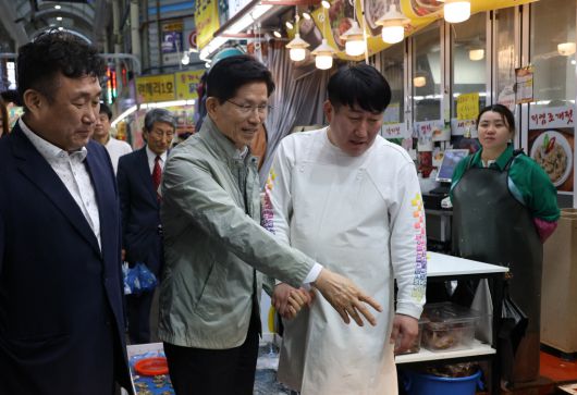 대전 전통시장 민심 청취 김문수 국민의힘 대선 경선 후보가 1일 대전 동구 대전중앙시장을 방문해 시민들과 대화를 나누고 있다. 연합뉴스 |