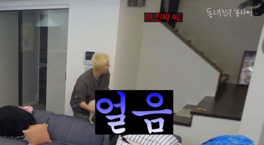 계단을 내려오던 이상화는 "아 진짜 씨..왜 그러는 거냐"며 난장판이 된 거실을 바라봤고, 강남은 "미안하다. 지금 생방 중"이라고 어필했지만 싸늘한 무반응이 돌아왔다.