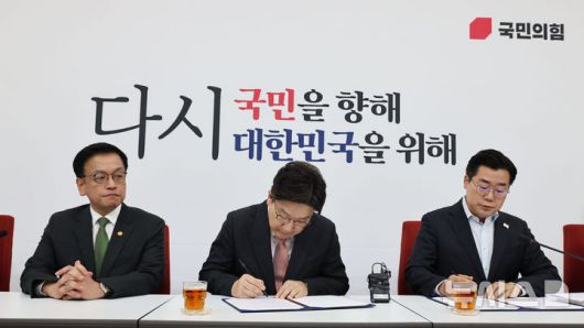 [서울=뉴시스] 권창회 기자 = 권성동 국민의힘 원내대표와 박찬대 더불어민주당 당대표 직무대행 겸 원내대표가 1일 오전 서울 여의도 국회에서 추경안 합의문에 서명하고 있다. 2025.05.01. kch0523@newsis.com |