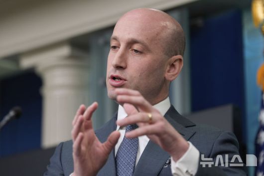 [워싱턴=AP/뉴시스]스티븐 밀러 미국 백악관 부비서실장이 1일(현지 시간) 백악관 브리핑에서 발언하고 있다. 2025.05.02. |