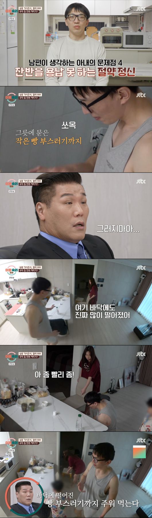 결국 남편은 남은 음식을 먹기 시작했고, 진태현은 “저걸 다 먹어야 돼요?”라고 물었고, 남편은 “네”라고 짧게 답을 했다. 남편은 아내가 시키는 대로 마지막 한 톨까지 다 처리했다. 남편은 “너무 빡세다. 그릇에 있는 김 가루나 고춧가루도”라며 모든 부스러기까지 먹어야 한다고 밝혔다.