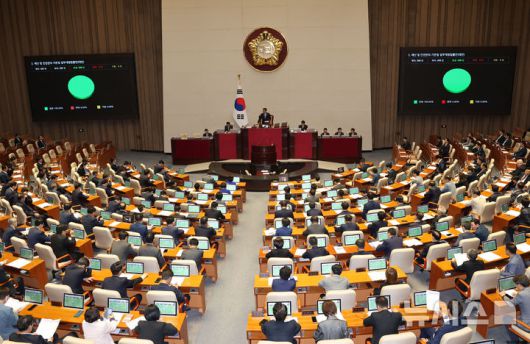 [서울=뉴시스] 권창회 기자 = 1일 서울 여의도 국회에서 열린 제424회 국회(임시회) 제7차 본회의에서 재난 및 안전관리 기본법 일부개정법률안이 통과되고 있다. 2025.05.01. kch0523@newsis.com