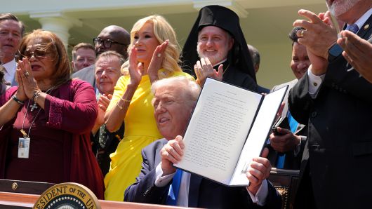 트럼프 대통령은 이날 백악관 로즈가든에서 열린 '국가 기도의 날'(매년 5월 첫 번째 목요일) 행사에서 행정명령 서명식을 가졌습니다.