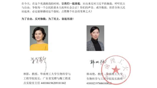 중국 바이두 온라인 백과에는 두 사람이 모두 화난이공대학에서 교수로 실제로 일하는 것으로 나와 있지만, 선언문의 진위는 확인되지 않았다고 중화권 매체들은 전했습니다.