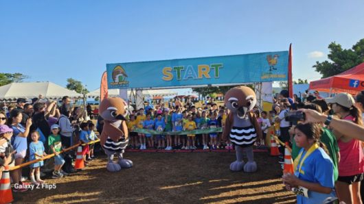 12일 '코코 키즈 펀 런' 경기 중 만 10~12세 어린이들이 출발선에서 힘차게 출발하고 있다. /괌=김고금평 기자 |