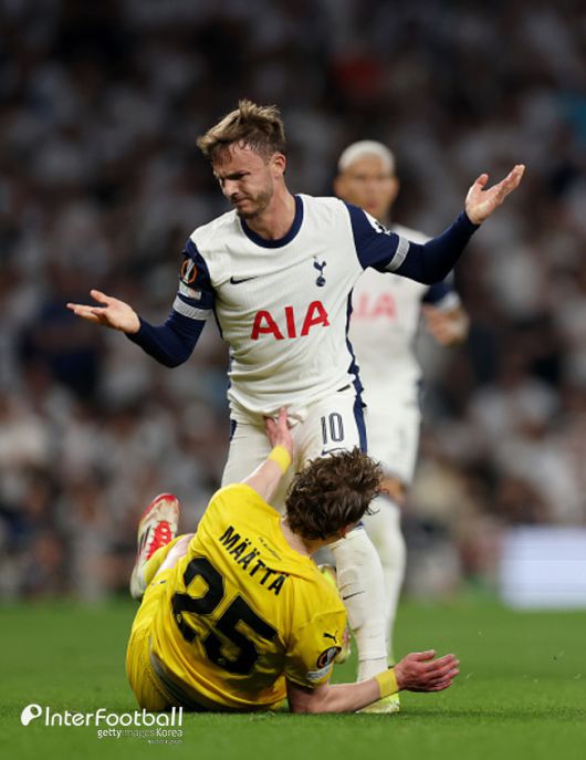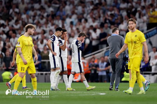 토트넘은 흐름을 탔다. 전반 38분 벤탄쿠르 환상 슈팅은 하이킨이 선방했다. 전반 42분 솔란케 슈팅은 막혔다. 전반 43분 히샬리송 슈팅은 득점으로 이어지지 않았다. 전반은 토트넘의 2-0 리드 속 종료됐다.