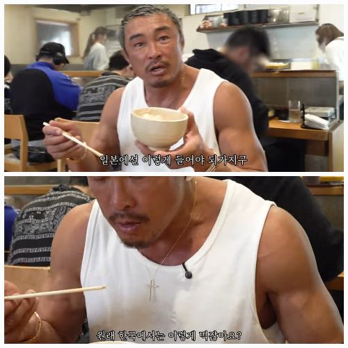 그 과정에서 제작진이 “일본에서는 밥그릇을 들고 먹는 게 더 맛있는 느낌”이라고 말하자, 추성훈은 “맞아요. 일본에선 밥그릇을 잡고 먹어야 한다. 한국처럼 식탁에 놓고 먹으면 실례가 된다”며 식문화 차이를 짚었다.