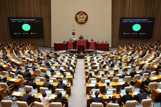 지난 1일 오후 서울 여의도 국회에서 열린 본회의에서 전세사기피해자 지원 및 주거안정에 관한 특별법 일부개정법률안이 가결되고 있다. 뉴스1 |