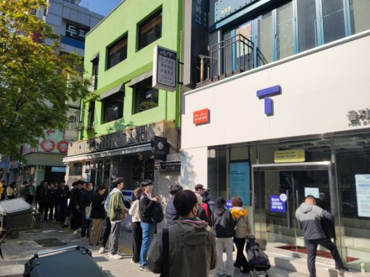 유심 교체를 위해 찾아온 고객들이 SK텔레콤 PS&M 을지로 직영점 앞에서 기다리고 있다(사진=디지털포스트) |