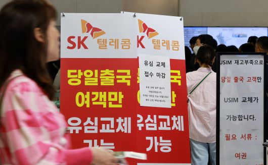 최장 엿새간 이어지는 징검다리 황금연휴가 시작된 1일 인천국제공항 제1여객터미널 SK텔레콤 로밍센터에 당일 출국 여행객만 유심 교체 가능 안내문이 설치되어 있다./뉴스1 |