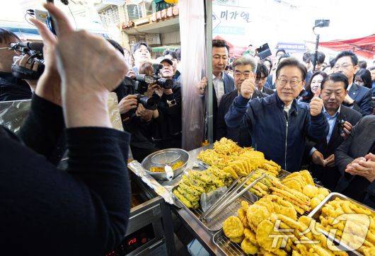 (철원=뉴스1) 이재명 기자 = '골목골목 경청투어 : 접경벨트편'에 나선 이재명 더불어민주당 대통령 후보가 2일 오전 강원 철원군 동송전통시장을 찾아 분신점 상인과 인사를 하고 있다. 2025.5.2/뉴스12expulsion@news1.krCopyright ⓒ 뉴스1. All rights reserved. 무단 전재 및 재배포, AI학습 이용 금지.