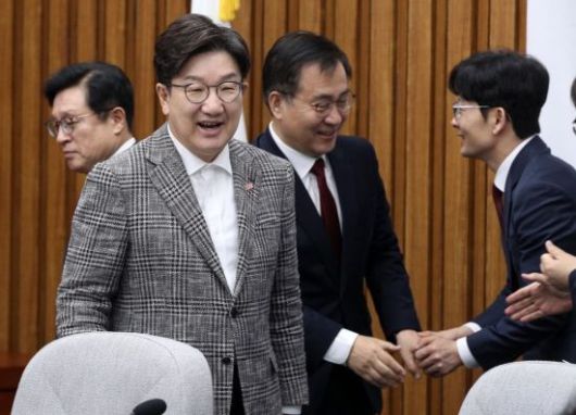 권성동 국민의힘 원내대표가 2일 국회에서 열린 원내대책회의에 참석하고 있다.