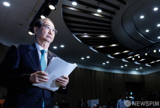 [서울=뉴스핌] 윤창빈 기자 = 한덕수 전 국무총리가 2일 오전 서울 여의도 국회에서 대선 출마 선언을 마치고 단상을 나서고 있다. 2025.05.02 pangbin@newspim.com |