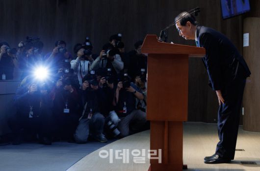 [이데일리 방인권 기자] 한덕수 전 국무총리가 2일 서울 여의도 국회 소통관에서 대선 출마 선언을 하기 앞서 인사를 하고 있다.