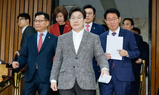 권 원내대표는 마지막으로 “지난 저녁 벌어진 광란의 탄핵난사는 이 후보의 사법리스크 제거를 위한 거대한 음모의 첫 단추이자, 선거 범죄 계획의 서막인 셈”이라며 “정부는 (민주당의) 국무회의 무력화 음모로부터 헌정을 수호하기 위한 모든 방법을 강구해야 한다”고 말했다.