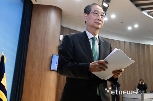 한덕수 전 국무총리가 2일 서울 여의도 국회에서 제21대 대통령선거 출마 선언 후 이동하고 있다. 이날 한 전 총리는 정부 출범 이후 즉시 개헌에 착수하고 3년차에 새로운 헌법에 따라 총선과 대선을 실시 한 뒤 곧바로 직을 내려놓겠다고 밝혔다. 이동근기자 foto@etnews.com [Copyright © 전자신문. 무단전재-재배포금지]