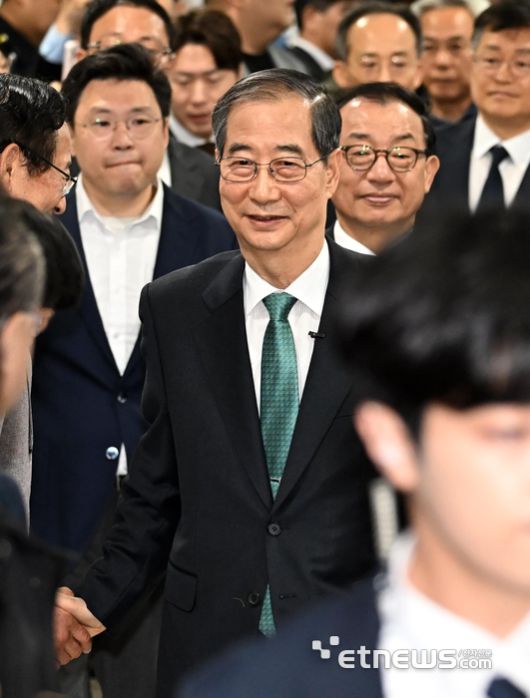 한덕수 전 국무총리가 2일 서울 여의도 국회에서 제21대 대통령선거 출마 선언을 위해 소통관으로 향하고 있다. 이날 한 전 총리는 정부 출범 이후 즉시 개헌에 착수하고 3년차에 새로운 헌법에 따라 총선과 대선을 실시 한 뒤 곧바로 직을 내려놓겠다고 밝혔다. 이동근기자 foto@etnews.com [Copyright © 전자신문. 무단전재-재배포금지]