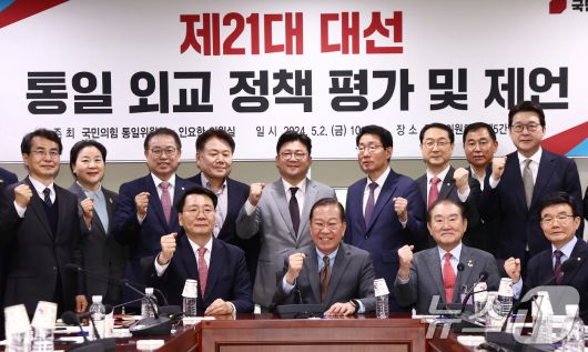 (서울=뉴스1) 김민지 기자 = 권영세 국민의힘 비상대책위원장이 2일 오전 서울 여의도 국회 의원회관에서 열린 제21대 대선 통일 외교 정책 평가 및 제언 토론회에서 참석자들과 기념촬영을 하고 있다. 2025.5.2/뉴스1kimkim@news1.krCopyright ⓒ 뉴스1. All rights reserved. 무단 전재 및 재배포, AI학습 이용 금지.
