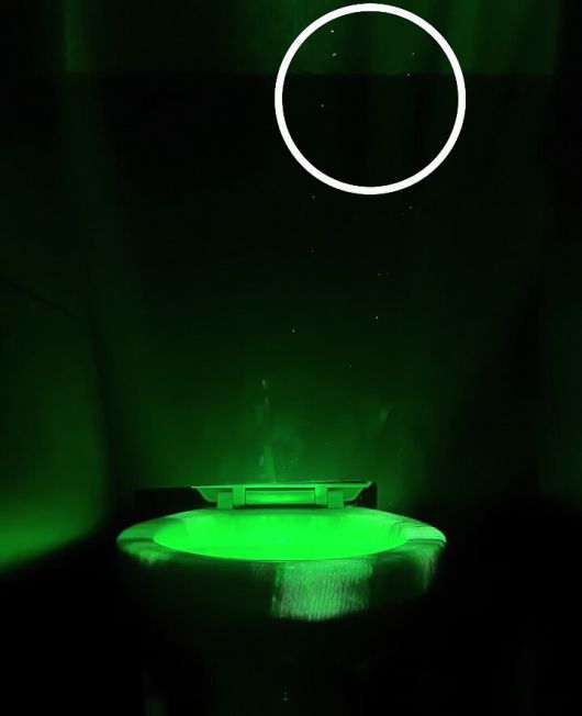 레이저로 관찰한 실험에서 물을 내렸을 때 최대 높이 92㎝까지 상승한 비말은 약 1분간 대기를 떠돌며 화장지 용기와 화장실 벽면 등 주변으로 퍼진 게 확인됐다.