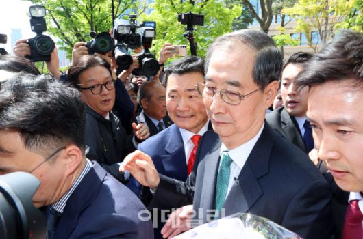 [포토]한덕수 전 국무총리에게 쏠린 관심