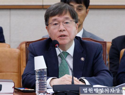 [서울=뉴스핌] 윤창빈 기자 = 배형원 법원행정처 차장이 2일 오전 서울 여의도 국회 법제사법위원회에서 열린 이재명 더불어민주당 대선 후보의 대법원 파기환송 관련 긴급현안질의에서 의원 질문에 답변하고 있다. 2025.05.02 pangbin@newspim.com