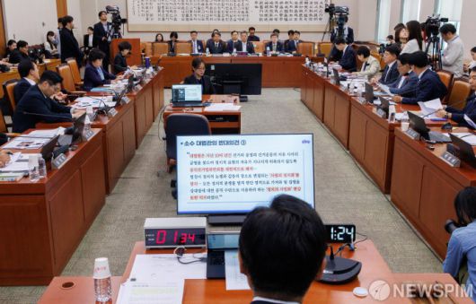 [서울=뉴스핌] 윤창빈 기자 = 배형원 법원행정처 차장이 2일 오전 서울 여의도 국회 법제사법위원회에서 열린 이재명 더불어민주당 대선 후보의 대법원 파기환송 관련 긴급현안질의에서 의원 질문에 답변하고 있다. 2025.05.02 pangbin@newspim.com |